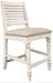 Bring tasteful style to your counter table or kitchen island with this simple country chic barstool. Details such as beautiful turned legs and a ladder slat back will bring visual impact to the room. With a built in footrest, fabric seat, and straight stretchers, you can guarantee comfort and support as this will be your family's favorite spot in the kitchen.