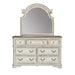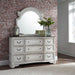 Blending of European traditional design influences makes Magnolia Manor a truly unique style for any living space. Warm antique finishes and artistic distressing along with grand scale a group to be passed to generations. The Weathered Bisque finish creates an updated traditional silhouette. Bail and knob hardware in antique pewter add the finishing touch to the cases.