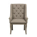 Designed for the modern traditional home, the Vermillion Collection is a light and airy take on the themes of classic style and refined elegance. Enhancing the distinct grain of oak veneer is a subtle bisque finish. Neutral-tone button-tufted fabric covers the arm chairs, each adorned with nailhead accent and coordinating wood legs.